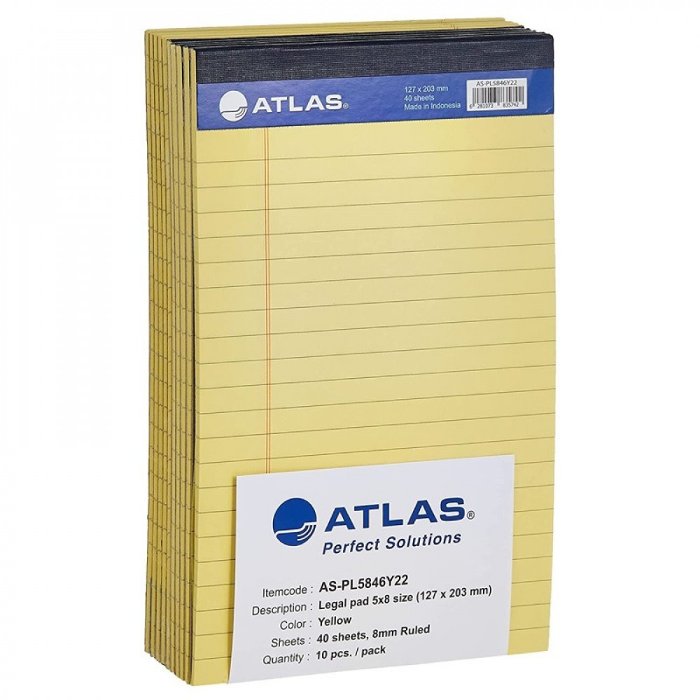 أطلس دفتر كتابة مسطر 8X5 أصفر الربطة 10 دفاتر