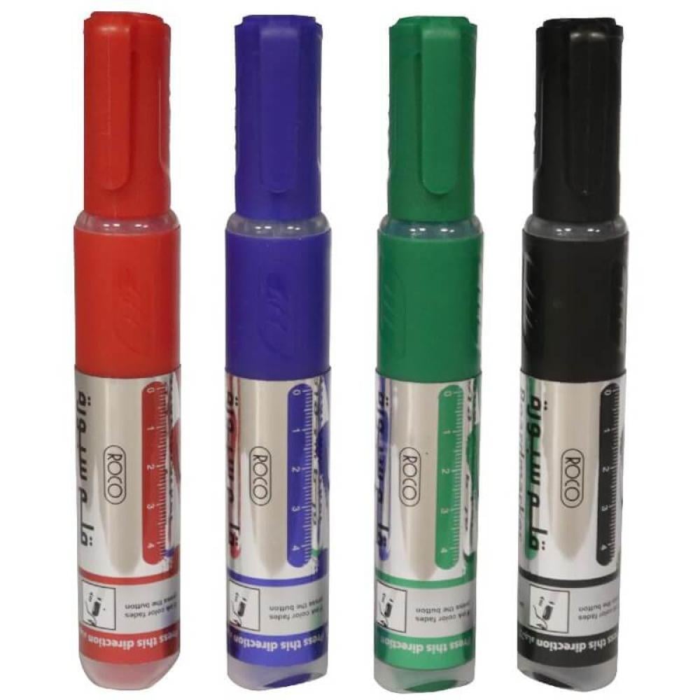 قلم سبورة بيضاء ضغاطحبر قابل للمسحالعبوة : حافظة 4 أقلاماللون : أزرق / أحمر / أسود / أخضرسن الكتابة : مشطوفعرض السن : 3 مم