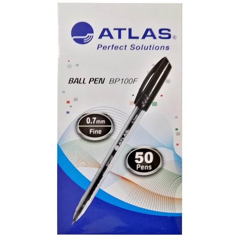 أطلس قلم جاف رفيع 0.7 مم BP100F أسود العلبة 50 قلم