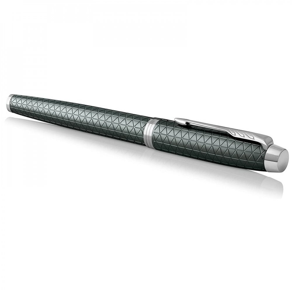 - Dark green anodized aluminum barrel and cap engraved with an intricate modern pattern are complemented by chrome accents and the signature PARKER arrow clip