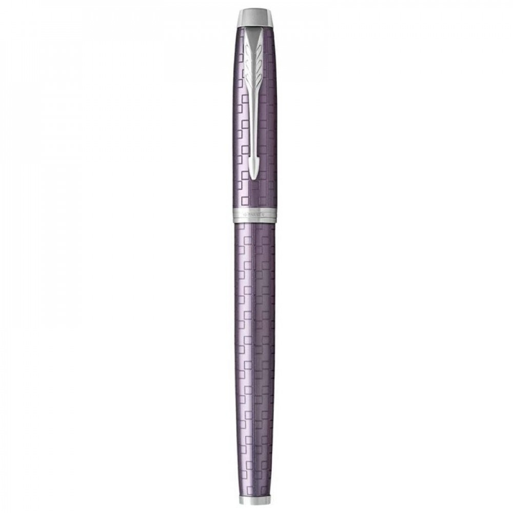 - Dark violet anodized aluminum barrel and cap engraved with an intricate modern pattern are complemented by chrome accents and the signature PARKER arrow clip