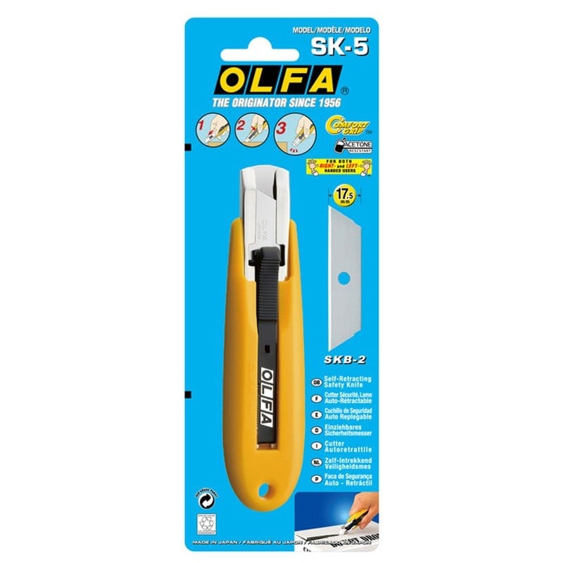 - Auto-retracting blade Safety Knife features powerful return spring
