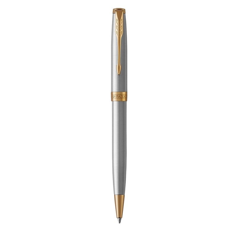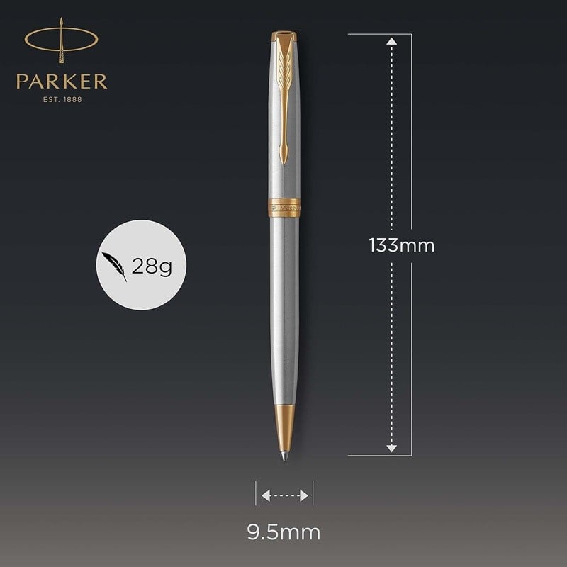Experience smoother, cleaner, more consistent writing performance with a PARKER Sonnet ballpoint pen. Timeless and elegant, this ballpoint pen with retractable twist mechanism and medium tip boasts a stainless steel cap and barrel accented by a gold-finished clip and trim. It is meticulously hand assembled and checked for flawless quality, providing high precision and exceptional writing comfort. Available in an array of designs, including the enduring Ciselé pattern, the Sonnet is a work of beauty, emblematic of PARKER craftsmanship. Bringing refined style to every writing occasion, the pen arrives in a PARKER premium gift box, ready for presentation.