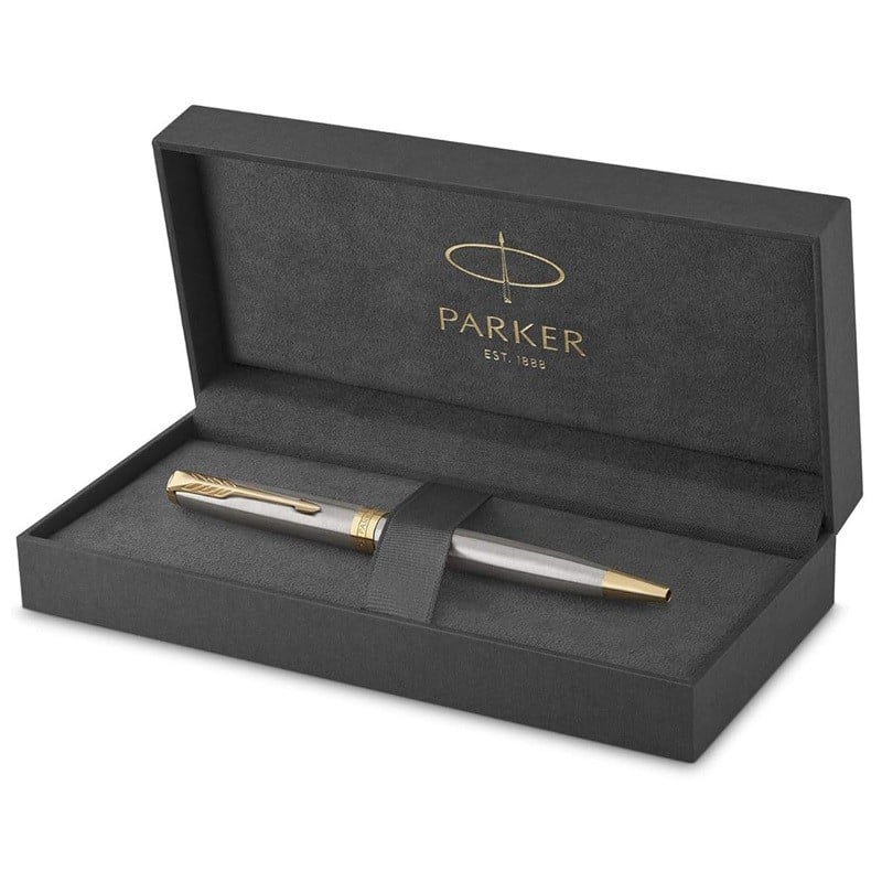 Experience smoother, cleaner, more consistent writing performance with a PARKER Sonnet ballpoint pen. Timeless and elegant, this ballpoint pen with retractable twist mechanism and medium tip boasts a stainless steel cap and barrel accented by a gold-finished clip and trim. It is meticulously hand assembled and checked for flawless quality, providing high precision and exceptional writing comfort. Available in an array of designs, including the enduring Ciselé pattern, the Sonnet is a work of beauty, emblematic of PARKER craftsmanship. Bringing refined style to every writing occasion, the pen arrives in a PARKER premium gift box, ready for presentation.
