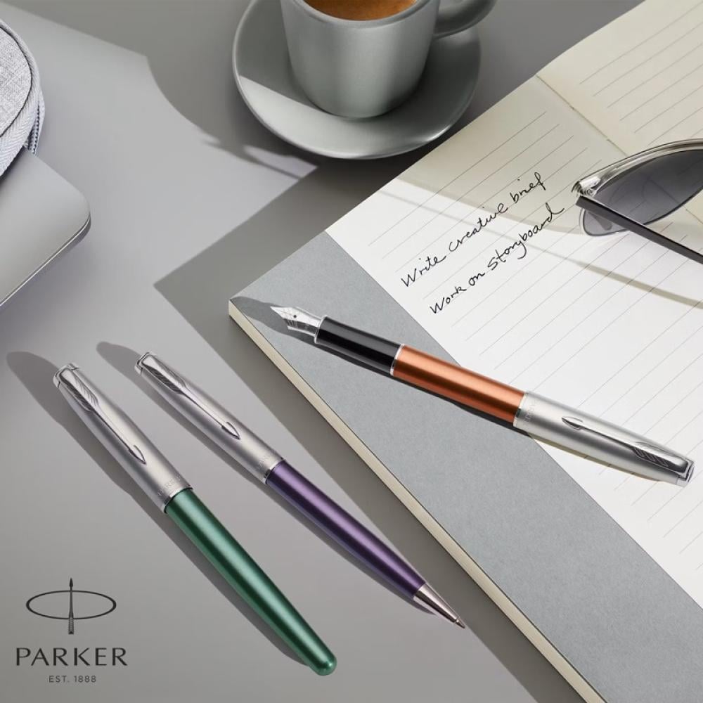 - This Parker pen features a stainless steel cap and Green lacquer barrel accented by palladium-plated trims and signature Parker arrow clip