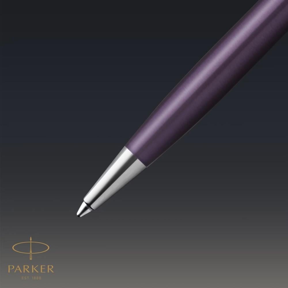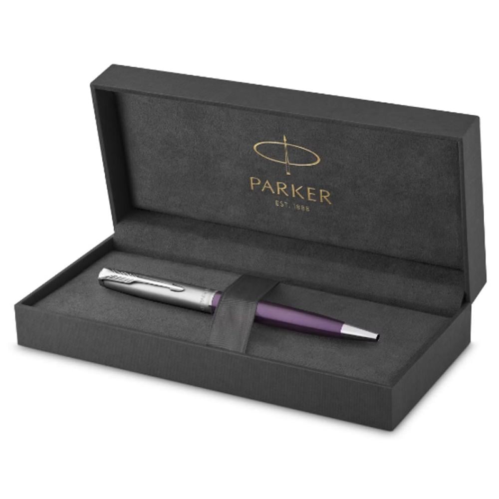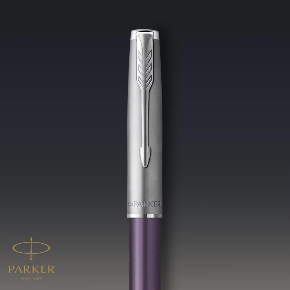 - This Parker pen features a stainless steel cap and violet lacquer barrel accented by palladium-plated trims and signature Parker arrow clip