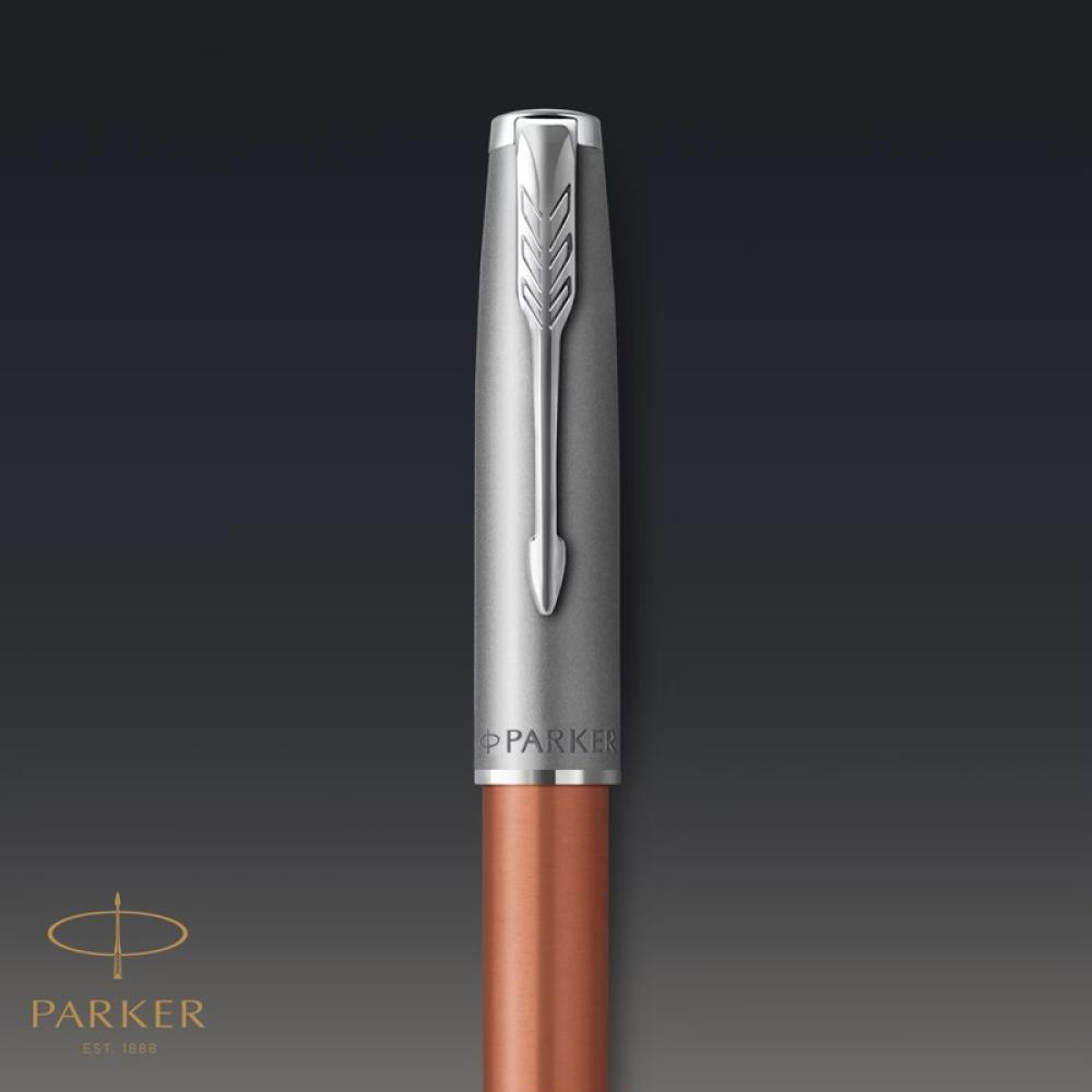 - This Parker pen features a stainless steel cap and Orange lacquer barrel accented by palladium-plated trims and signature Parker arrow clip