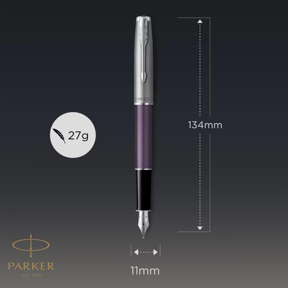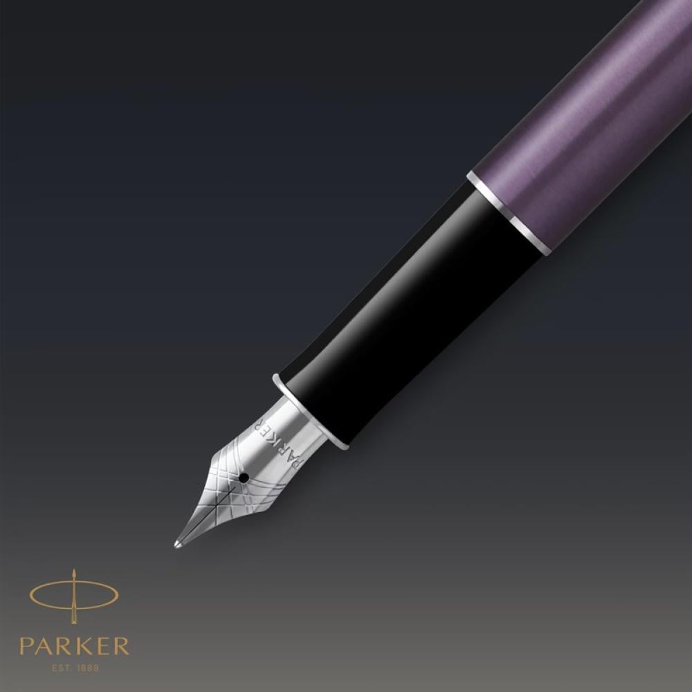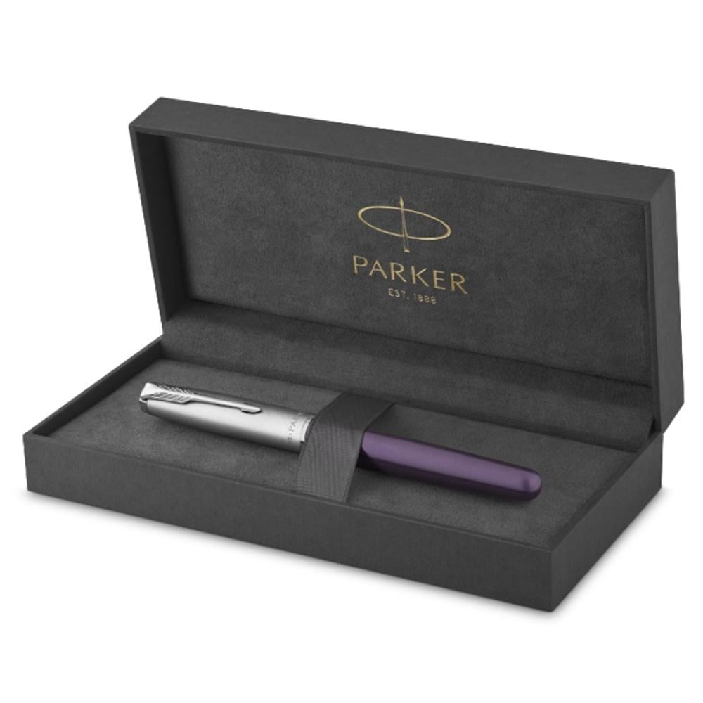 - This Parker pen features a stainless steel cap and violet lacquer barrel accented by palladium-plated trims and signature Parker arrow clip