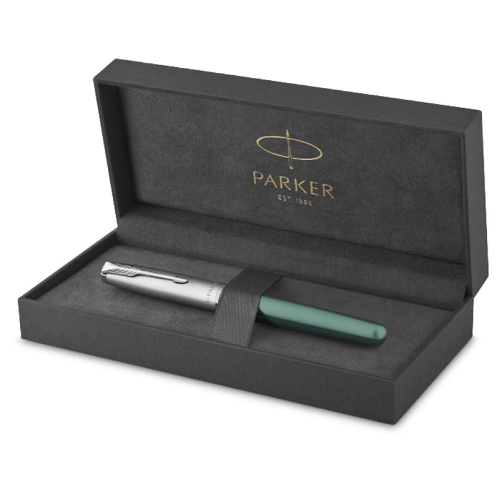 - This Parker pen features a stainless steel cap and Green lacquer barrel accented by palladium-plated trims and signature Parker arrow clip